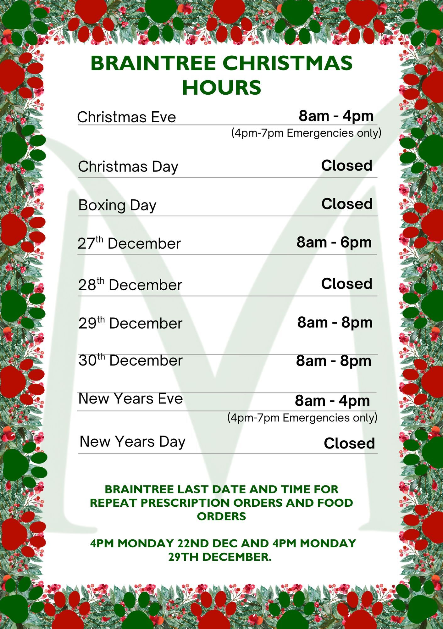 BRAINTREE 2026 CHRISTMAS OPENING HOURS
